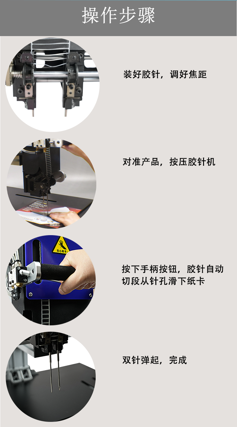 l 弹性胶钉的机针可与多种背卡材料配合使用,其设计更贴合产品,也更富有变化,有利于提升品牌形象,更重要的是令品牌和产品脱颖而出。