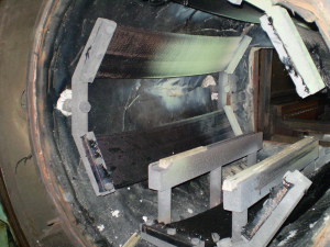 9.電爐坑滲水時(shí)應(yīng)及時(shí)排水,以免電氣線路受潮短路.對(duì)于真空系統(tǒng)也有影響,爐體進(jìn)水真空抽得慢,需要加熱烘烤后真空才能恢復(fù),真空泵進(jìn)水直接影響真空,必須清洗管道,清洗真 空泵,更換真空泵油等。